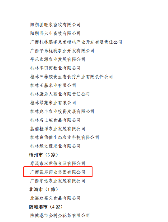 廣西強(qiáng)壽藥業(yè)集團(tuán)榮獲“自治區(qū)級(jí)農(nóng)業(yè)龍頭企業(yè)”稱號(hào)