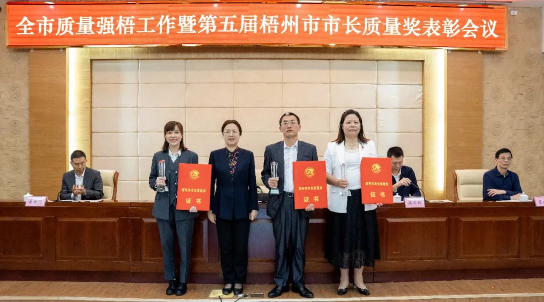 市長質量獎是梧州政府設立的最高質量榮譽!受國務院特殊津貼專家、集團董事長李浪輝委托,副總經理唐專通代表集團參加會議并登臺領獎。