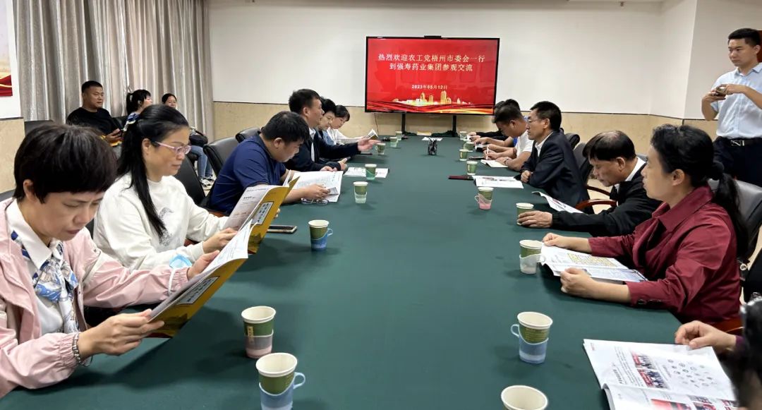 5月12日上午,農(nóng)工黨梧州市委會主委張崇貴、專職副主委兼秘書長劉萍率各支部負責(zé)人、部分骨干黨員代表到強壽藥業(yè)集團參觀交流。